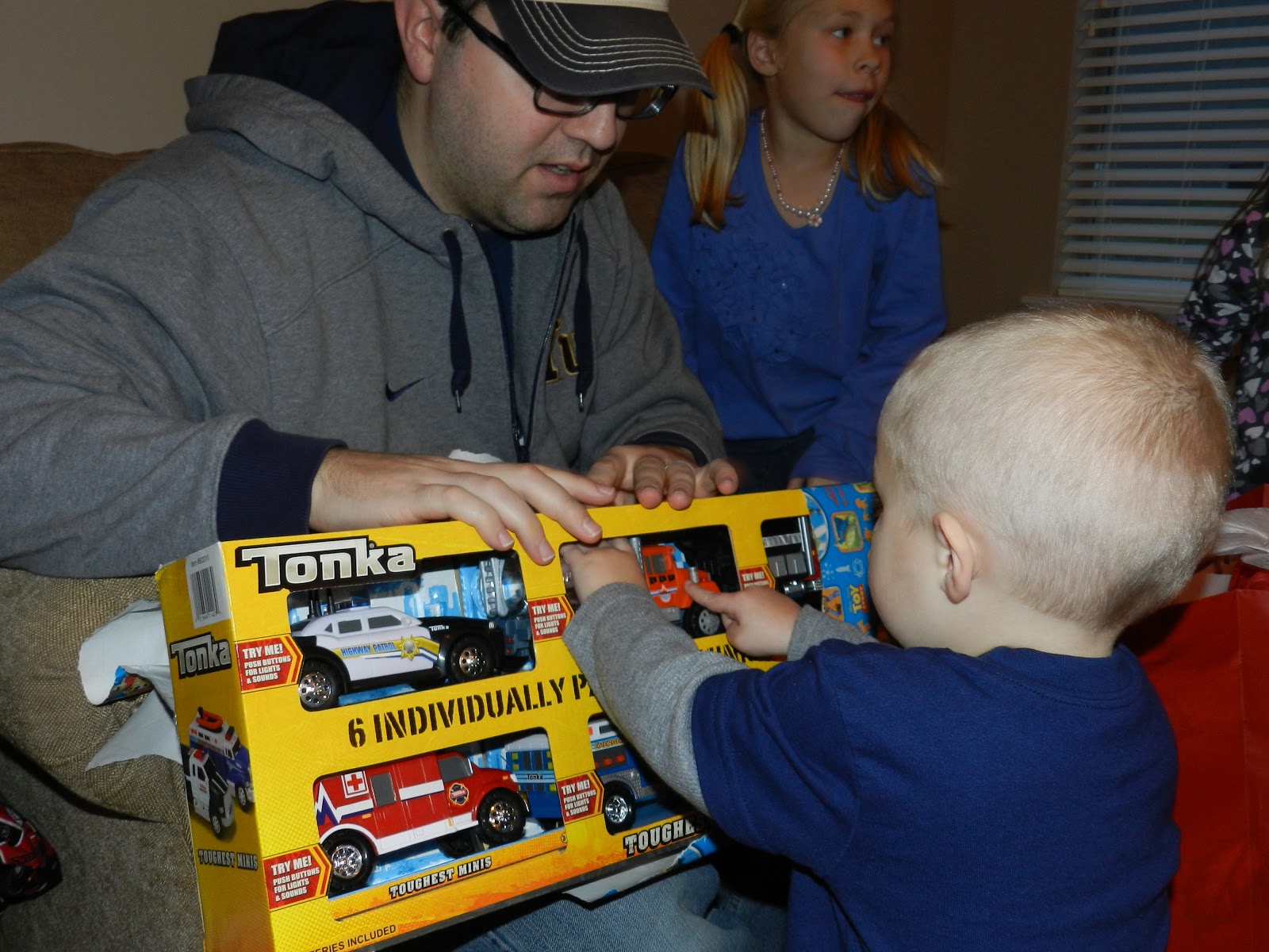 I think Christian loved everything he got. He was so excited to see what was in each package. He got lots of cars and trucks, some books, a new pillow pet, a puzzle, and some pjs and an outfit from gma and gpa Cromwell. Its so fun to watch them react to what they receive. They get so excited and are so happy!